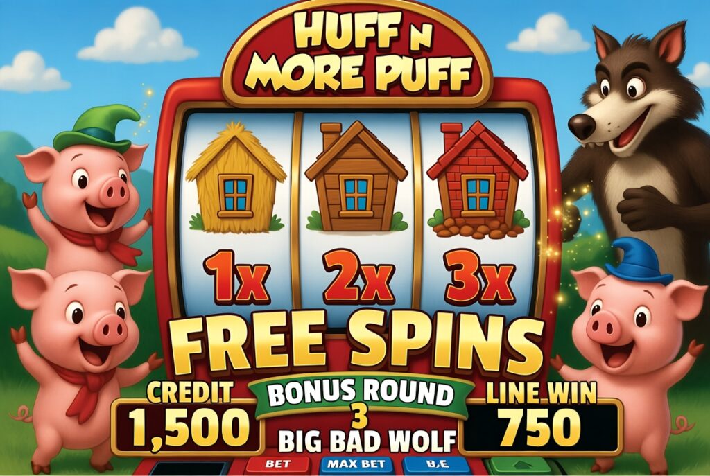 At the end of the bonus, the Big Bad Wolf blows down the houses to reveal your total win – often with impressive multipliers. These mechanics keep the Huff N More Puff Game fresh and rewarding.